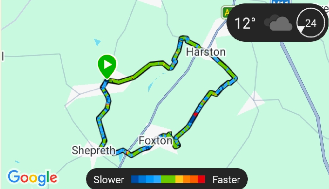 Leaving Foxton presented an unseen problem as onward footpaths were blocked by housing, resulting in numerous attempts to reach the desired route before finally succeeding. This left the Rowley’s hill ascent to be tackled at pace by a few as the group then entered into Harston and a wet river section.